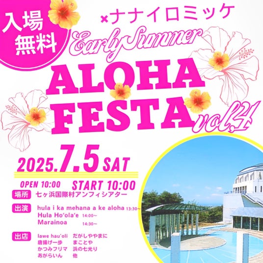 2025年7月5日(土)、宮城県七ヶ浜町の七ヶ浜国際村アンフィシアターにて、「Early Summer ALOHA FESTA vol.4」が開催されます。