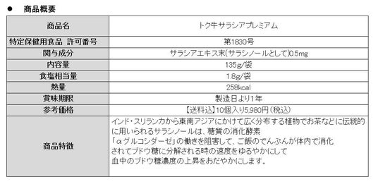 「トク牛サラシアプレミアム 」は、食後の血糖値が高めで、食事に含まれる糖質が気になる方の食生活改善に役立つ特定保健用食品です。