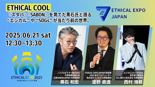 一般社団法人ETHICAL EXPO JAPAN(代表理事:塗野 直透)は、2025年6月21日(土) 、22日(日)にグランフロント大阪北館1階 ナレッジプラザにて、Z世代が共創する日本最大級のエシカルの祭典「エシカルエキスポ2025 OSAKA」を開催いたします。本イベントの、初日1つ目のトークセッションに元SABON Japan CEOであり、ノスプロダクター株式会社 黒石氏のゲスト登壇が決定いたしました。