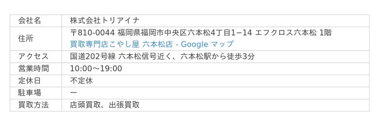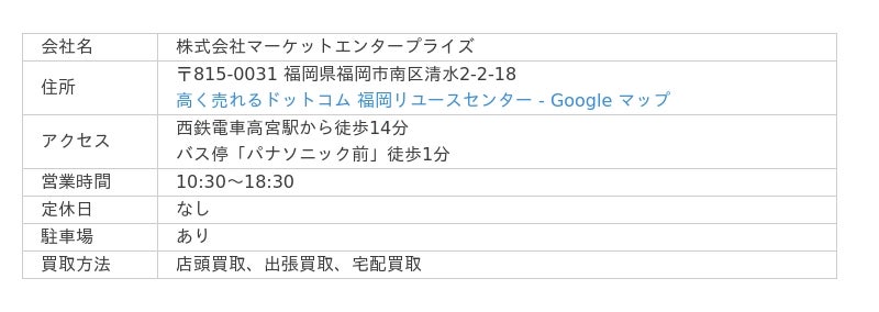 なお、ビールに関しては「24本入りで製造年月が先月および今月のもの」と期限が限られているので注意しましょう。店舗は福岡県行橋市にあり、大量買取や法人向けの大口買取、遺品整理にも対応。また、買取以外にも「質預かり」や「不用品回収」も行っています。