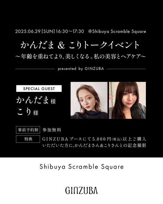 <事前予約制>GINZUBAスペシャルトークイベントを開催『かんだま&こりトークイベント~年齢を重ねてより、美しくなる。私の美容とヘアケア~』