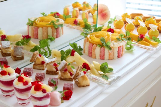 ・ワゴンで登場する小菓子:桃とマンゴーを主役にした約10種の小菓子を、存分に味わえる贅沢なひととき。