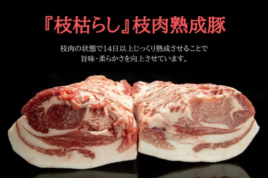 「枝枯らし熟成豚」は、一般の国産豚と比べてコクを引き出すアミノ酸が豊富に含まれており、噛むほどに奥深い風味を感じることができます。