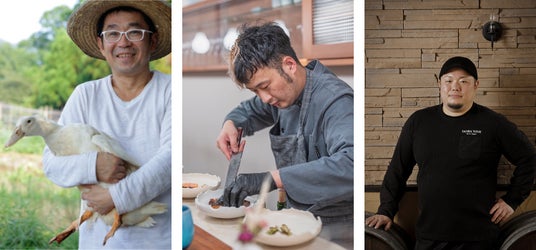 【フェアフィールド・バイ・マリオット 道の駅プロジェクト】京都府亀岡産 ななたに鴨生産者 加藤高志氏、Aspirant 松本拓也シェフ、du Tamba 木戸瞬介シェフのコラボレーションディナー!