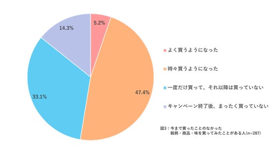Q.あると答えた方にお伺いします。キャンペーン終了後、どのくらいの頻度で買うようになりましたか。(図3)