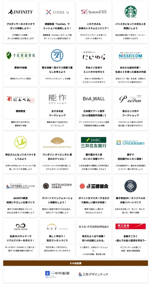 三井不動産は、これまでも一般社団法人日本橋室町エリアマネジメントとともに、日本橋エリアで地域のプレイヤーと継続的に連携し、子どもたちの未来の可能性を広げる「日本橋 次世代教育 プロジェクト」を実施してまいりました。2024年度は、夏のわくわくキッズフェス2024のほか、 "学校では教えてもらえない"をコンセプトにした「日本橋みらいスクール」、10代のためのクリエーションの学び舎「GAKU」と連携した写真の教育プログラムなど3つのプロジェクトを実施し、延べ約4,000名以上にご参加いただきました。これからも、本プロジェクトを通して、未来を担う子どもたちが広く深く世界を知るきっかけを創出してまいります。