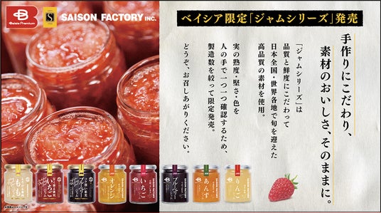 株式会社ベイシア(本社:群馬県前橋市、代表取締役社長:相木孝仁)は、株式会社セゾンファクトリー(本社:山形県東置賜郡、代表取締役:小田切一哉)と共同開発した「こだわりのジャムシリーズ」を、6月18日(水)より当社プライベートブランド(以下PB)「Beisia Premium(ベイシアプレミアム)」の新商品として発売いたします。「Beisia Premium」はお客様の生活に近い小売のプロ集団であるベイシアが「生活品の目利き」として、高品質と低価格を両立させた当社渾身のPBです。今回発売する「こだわりのジャムシリーズ」は素材・製法・味わいにこだわった逸品で、パンにのせるのはもちろん、そのままでも果実のおいしさをしっかりと感じていただける商品です。