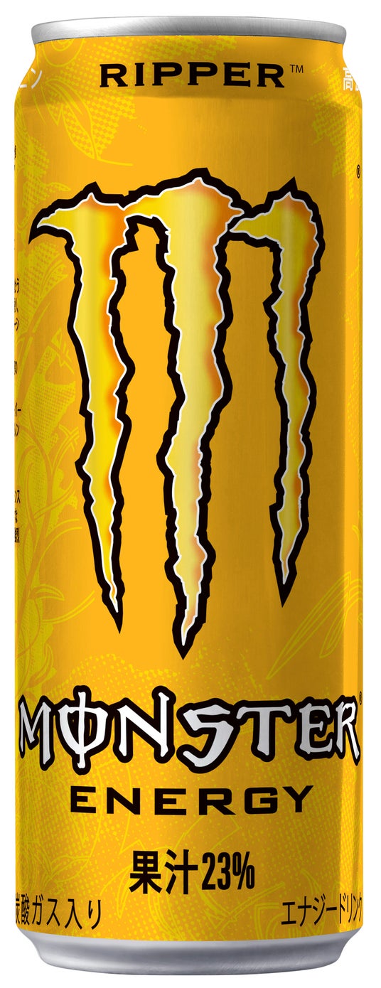 『モンスター リッパー』は、りんご、パッションフルーツ、パインアップル、グァバ、オレンジ、レモン果汁を23%使用し、トロピカルな味わいが特長のエナジードリンクです。ナイアシン、ビタミンB6、ビタミンB2、ビタミンB12、アルギニン、カルニチン、高麗人参エキスといったエナジー成分を独自にブレンドし、休憩時やリフレッシュしたい時などにぴったりです。