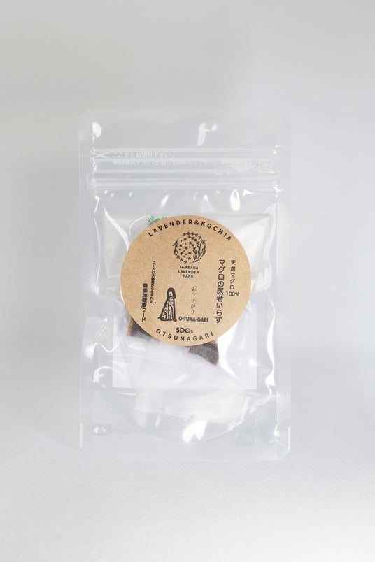 「おツナがり」プロジェクトとは、社会課題解決を主として活動する合同会社 3154 が、豊洲市場におけるフードロス問題に着目し、保護犬活動サポートの仕組みを整えたプロジェクトです。高鮮度で可食部分が多く残るマグロが手間や慣習により産業廃棄物となる課題に対し、マグロの命を愛犬に繋げる「命のリレー」をテーマにドッグフード、トリーツを開発。マグロの命を「ごみ」で終わらせず、次の命へつなぐ事を意味し「おツナがり」と名付けられました。 製品の原材料は「豊洲市場の天然マグロのみ」。副食材・添加物不使用、グルテンフー、オイル無添加、合成アミノ酸フリーのパーフェクトな安心・安全な完全ハンドメイドで製造されています。さらに、2010 年に発見された強力な抗酸化作用のある「セレノネイン」を最も多く含む食材としてマグロが挙げられています。長時間低温調理によるこだわりの製法で、大切な家族である愛犬の「健康寿命」にアプローチする唯一無二のプレミアムな製品を実現しました。