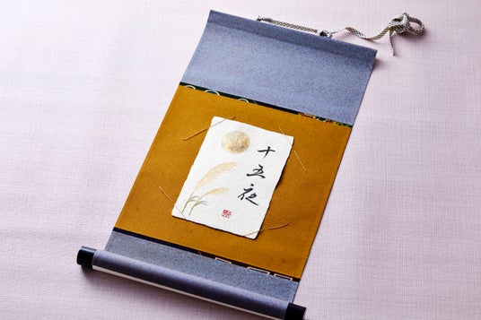 日本人ほど月を愛する心が強いのは世界でも稀です。中秋の名月を愛でるようになったのは、遡ること1000年。平安時代、その年の収穫物と月見団子をお供えし豊作の感謝と祈念をするようになり、風習が作られました。そして、経巻の装丁から始まった表具の技術は、仏教と同時に中国より日本に伝わります。1000年余りの生活様式・建築様式の移り変わりにより洗練されていきました。ご自身で筆を持ちはがきを書き、日本独自の文化となった表装で仕立て、巻物のように丸めてコンパクトにお持ち帰りいただけます。