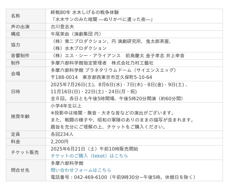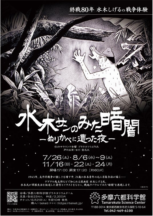 【多摩六都科学館】水木しげる氏の戦争体験を描いたプラネタリウム番組「水木サンのみた暗闇 -ぬりかべに遭った夜-」 戦後80年の夏に投影決定