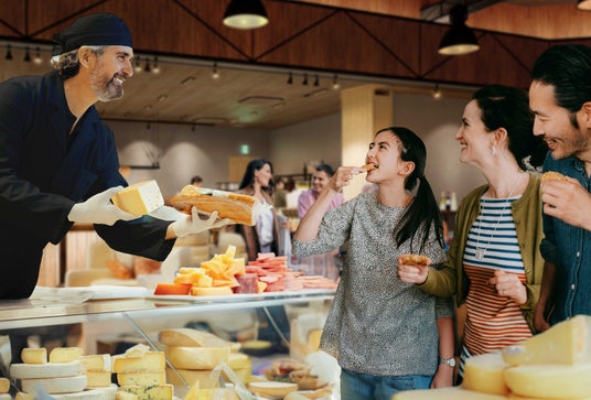 「ルーベンス・マルシェ」には、チーズやワイン、ご当地食品などに精通した各分野のマイスターが常駐しており、彼らとの会話を通じて、商品の背景や楽しみ方を深く知り、ご購入いただけます。