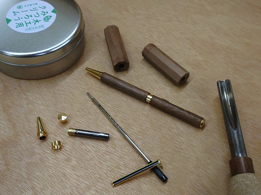 2.「木工旋盤でボールペン作り」(予約不要、先着20名、予約者優先)木工旋盤とペンキットを使って木軸ボールペンを作ります。
