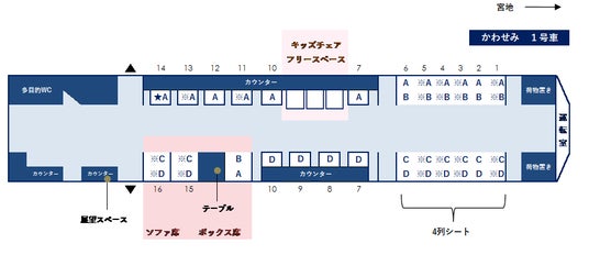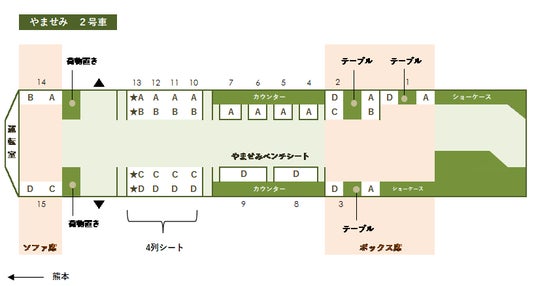 ■座席によっては、窓がない、または車窓が見えづらい場合があります。