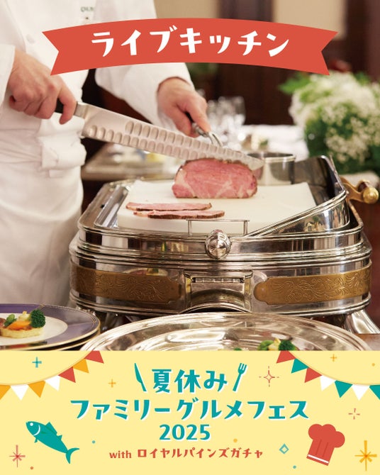 ソラーレ ホテルズ アンド リゾーツ株式会社(所在地:東京都港区、代表取締役社長:井 上 理)が運営するロイヤルパインズホテル浦和は、8月9日(土)・10日(日)に開催される「夏休みファミリーグルメフェス2025with ロイヤルパインズガチャ」のディナーチケット付き宿泊プランを2025年6月17日(火)15:00~販売開始いたします。8/9・10泊の各日10室限定販売。翌朝食も付いたお得な宿泊プランとなっております。夏休みファミリーグルメフェスではホテル自慢のビュッフェディナーをお召し上がりいただきながら、マグロ解体ショーやライブキッチン、キッズシェフ体験、宿泊券やレストランお食事券などが当たるガチャをお楽しみいただけます。夏休みのグルメイベントとしていかがでしょうか?皆様のお越しをお待ちしております。