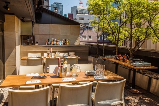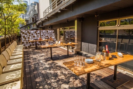 バネバグース赤坂見附店のテラス席は、赤坂の街並みを感じながらリラックスできる開放的な空間。