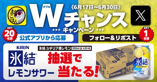 「お好み焼本舗公式アプリ」または「お好み焼本舗公式X」のフォロー&リポストからご応募いただくと、抽選で合計21名様に「キリン 氷結(R)︎ シチリア産レモン」1ケースをプレゼントいたします。爽やかなレモンの風味が広がる「キリン 氷結(R)︎ シチリア産レモン」で夏の始まりをもっと楽しく!今だけのWチャンスキャンペーンをお見逃しなく。■開催期間