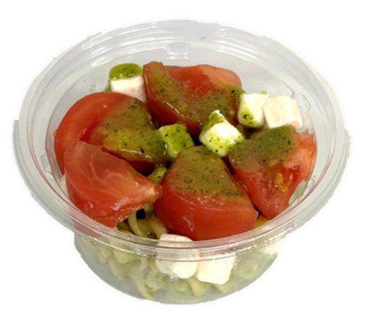 特長:トマトと相性の良い濃厚なクリームチーズ、ショートパスタを組合せ彩り良く仕上げています。アンチョビを効かせた風味の良いバジルソースをからめてお召し上がりください。