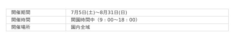 また、滝野の夏の定番「沢遊び&水遊び」をはじめ、自然を満喫できる滝野の森ゾーンでの「虫さがし」、こどもはもちろん大人も楽しめる「夏限定イベント」など、夏ならではの楽しみ方が盛りだくさん!