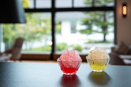抹茶やレモン風味のミニかき氷もご用意。信州の涼を感じるひとときをお楽しみください。