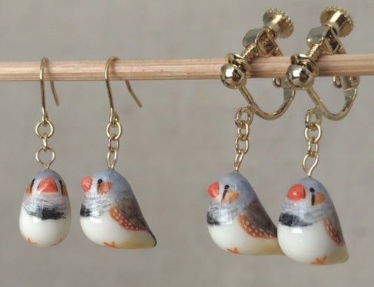 「tococoro」キンカチョウピアス&イヤリング 各3,300円