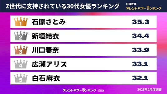 『タレントパワーランキング』では、タレントパワーランキングに登録されている30代女優について、Z世代(10代~20代の男女)が回答した結果を調査。