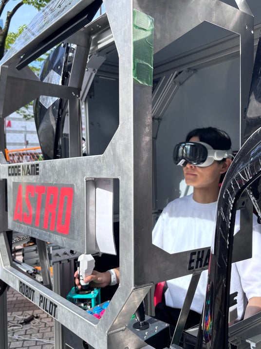 MOVeLOT.Incの搭乗型ロボット「ASTRO」に乗り込みApple Vision Proを操作する様子