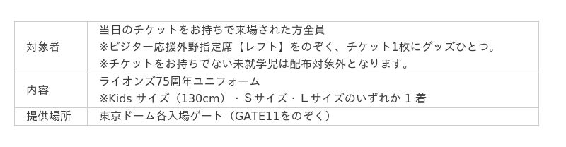 ■来場者様全員に「ライオンズ75周年ユニフォーム」をプレゼント