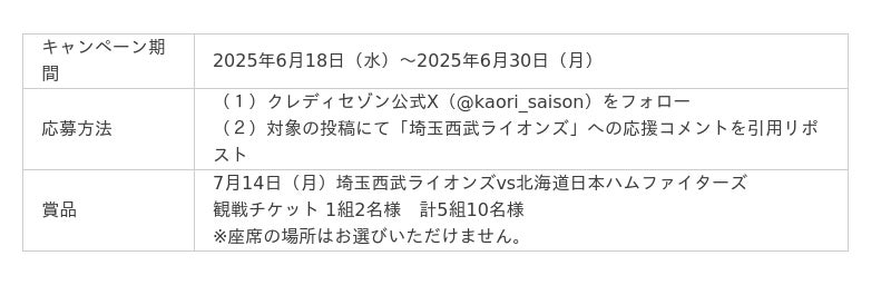 株式会社クレディセゾン(本社:東京都豊島区、代表取締役(兼)社長執行役員COO:水野 克己、 以下:当社)は、2025年7月14日(月)に東京ドームで開催される「ライオンズ75周年シリーズ」北海道日本ハムファイターズ戦に冠協賛し『SAISON presents スペシャルナイター』を開催いたします。