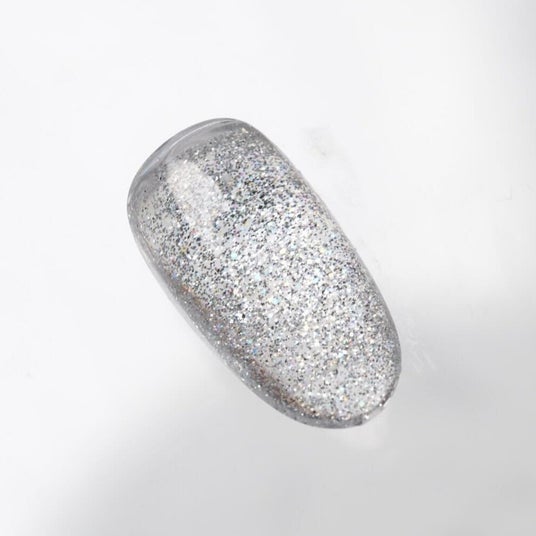 微細なシルバーラメがフラッシュで一気に華やぐ、万能なクリアシルバーカラー。