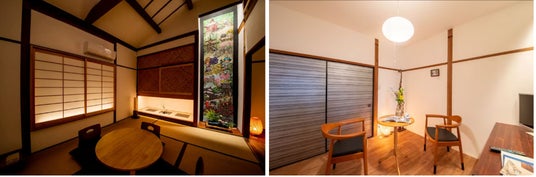 上質な木材を使用したインテリア、落ち着いた和の空間、最新設備を取り入れたダイニングなど、日常を忘れさせる贅沢な時間をお過ごしいただけます。日本の伝統的な信楽焼で作られた浴槽(陶器風呂)を浴室に2つ設置しており、信楽焼のもたらす優しい温もりを体感できることも魅力。