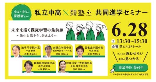 「第一志望合格も、未来を描く力も。」私立中高×類塾プラスが共同セミナーを開催! 「探究学習の最前線を先生と語ろう!」~6月28日(土)大阪・オンライン同時開催~
