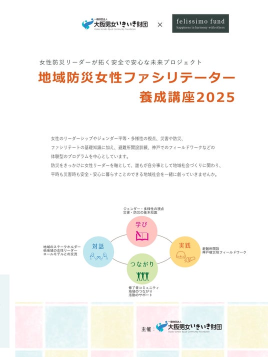 今年度は、株式会社フェリシモの「フェリシモもっとずっときっと基金」と当財団の「女性のチャレンジ支援基金」を活用して、「地域防災女性ファシリテーター養成講座2025」を実施します。