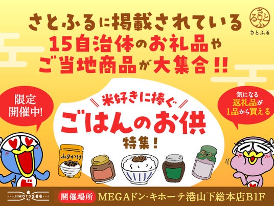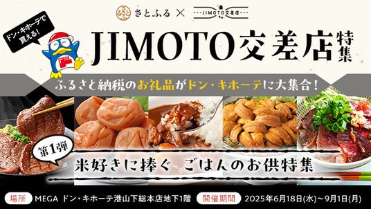 ふるさと納税ポータルサイト「さとふる」を運営する株式会社さとふる(本社:東京都中央区、代表取締役社長 兼 CEO:藤井 宏明)と、パン・パシフィック・インターナショナルホールディングスグループで、リテールメディア(広告事業)の商品・サービス開発を担う株式会社カイバラボ(本社:東京都渋谷区、代表取締役社長:森谷 健史)は、地域産品の魅力発信を目的に、2025年6月18日よりMEGAドン・キホーテ 港山下総本店にて「JIMOTO交差店×さとふる」を開催します。「JIMOTO交差店×さとふる」で日本全国の豊富なふるさと納税のお礼品をその場で見て購入できる体験を提供するとともに、PPIHグループのmajicaアプリや「さとふる」の特集ページへの掲載などを通じて、より多くの地域産品の魅力を発信します。