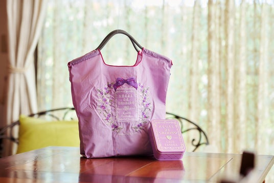 厚手の生地に刺繍でデザインを施したショッピングバッグは、耐久性にすぐれ、折りたたむとコンパクトになり持ち運びにも便利です。