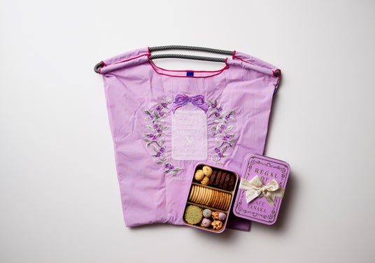 Ball&Chainのエコバッグは耐久性と撥水性に優れたデザイン性の高い人気のショッピングバッグです。コラボ第2弾ではカフェタナカのブランドカラーであるラベンダーをご用意。メインブランド「レガルドチヒロ」をイメージしたデザインが美しい刺繍によって華やかに表現されています。