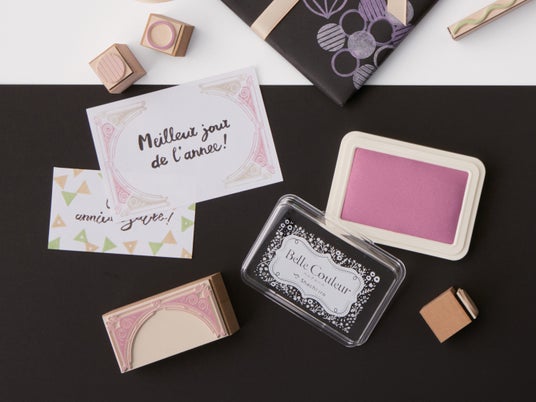 ・ベルクルール 黒や濃色の紙面でもクッキリと鮮やかに発色するスモーキーなペールカラーのスタンプパッド「ベルクルール」。ネーミングの由来は、フランス語の「belle(美しい)」「couleur(色彩)」から。和の色合いを楽しめるスタンプパッド「いろもよう」とはひと味違った作品づくりを楽しめます。インキ色は全8色をご用意しています。