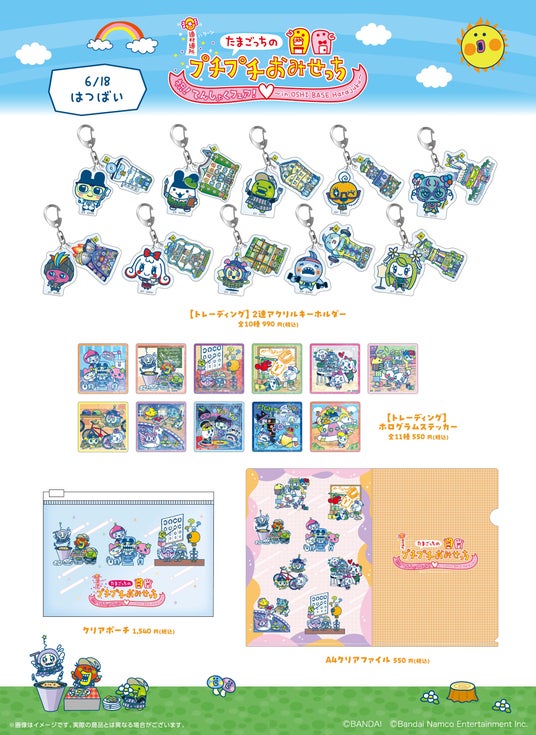 1.グッズ販売・内容:グッズ販売では、てんしょくフェアの描き下ろしイラストおよび、「たまごっちのプチプチおみせっち」シリーズのイラストを使用したグッズを販売!