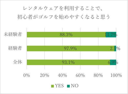 また、初心者をラウンドデビューに誘う経験者側も「ゴルフウェアの準備の心配がなくなれば、初心者を誘いやすくなる」と答えた方が 97.9 %であり、誘う側のハードルの軽減にもなることが分かりました。