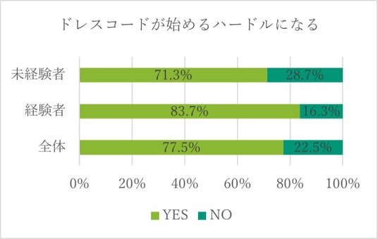 かつてのように社会人デビューと同時にゴルフを無理やり始めさせられる、という時代ではなくなり、ゴルフ業界では若者の新規参入数の低下と高齢化が課題となっています。当社が実施したアンケートでは、専用のウェアが必要なことが、ゴルフを始めるハードルになっているがことが分かりました。