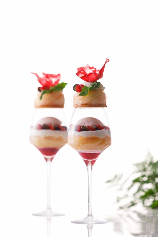 パフェ・スペシャリテ驚きやワクワクを感じさせるデコレーションの、ペストリーシェフが手がけるフォトジェニックなパフェ。旬の食材を使用するパフェは、コーヒーや紅茶はもちろん、お酒にも相性が良いので、スイーツタイムや〆パフェとして、様々なシチュエーションでお楽しみいただけます。7/18(金)から8/31(日)のテーマは桃&ライチ。赤いチュイルのデコレーションが印象的な、ジューシーで爽やかな味わいをお楽しみください。
