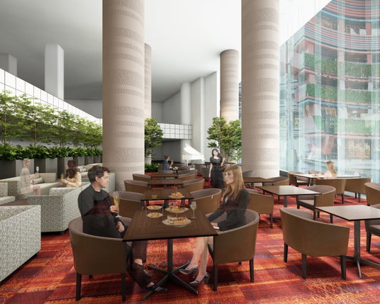 ホテルの象徴でもあるキャナルシティ博多の噴水を臨むダイナミックな吹き抜け空間や、ライブミュージックを開催するステージはそのままに、グランド ハイアット 福岡のコンセプトである「東洋と西洋の融合( East Meets West )」を踏襲したインテリアやメニューに一新してリニューアルいたします。