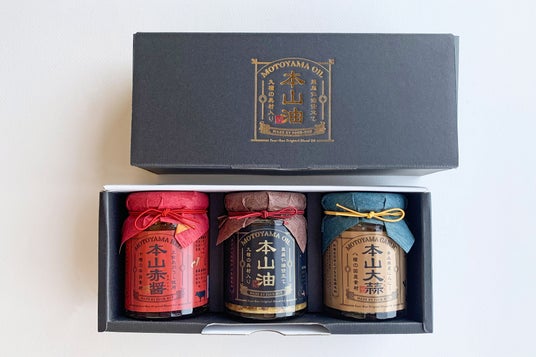 ・贈り物にも最適ちょっとした贈り物に選ばれているのが、「本山油」「本山大蒜」「本山赤醤」が1本ずつ入ったセット。手軽に使えて、お料理好きな方に好評です。