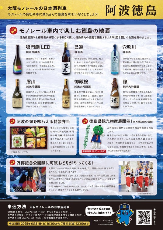 大阪モノレールの日本酒列車「阿波徳島」募集開始