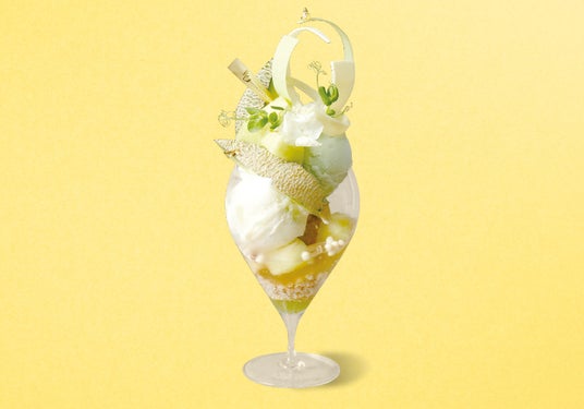 みずみずしいメロンとジャージーミルクアイスの濃厚な甘みに、エルダーフラワーの香りとヨーグルトの酸味を合わせたフルーツパフェです。
