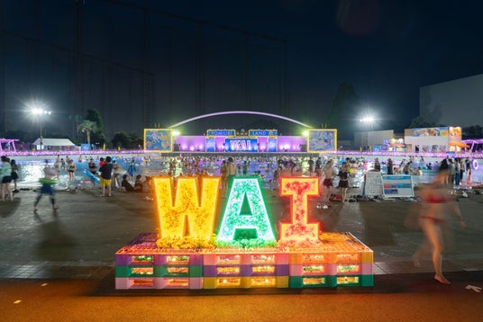 ■今年も登場!かわいい「WAI」オブジェ花で「WAI」の文字が彩られたオブジェを波のプールに設置します。ナイトプール開催時にはLEDライトが光り、ナイトプールらしい華やかなフォトスポットになります。[場 所]波のプール
