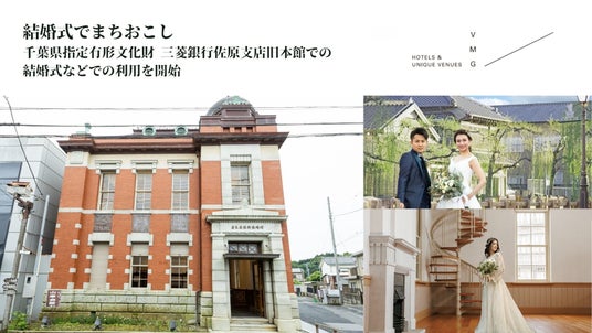 バリューマネジメント株式会社(本社:大阪府大阪市、代表:他力野 淳、以下当社)は、千葉県香取市と、千葉県指定有形文化財 三菱銀行佐原支店旧本館(以下、佐原三菱館)の指定管理者と、佐原三菱館の活用推進における実施協定を締結いたしました。実施協定に基づき、2025年7月より、佐原商家町ホテル NIPPONIAにて佐原三菱館での結婚式での利用を開始いたします。