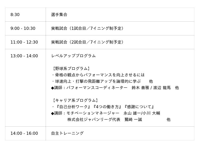 ジャパンサマーリーグプログラム内容