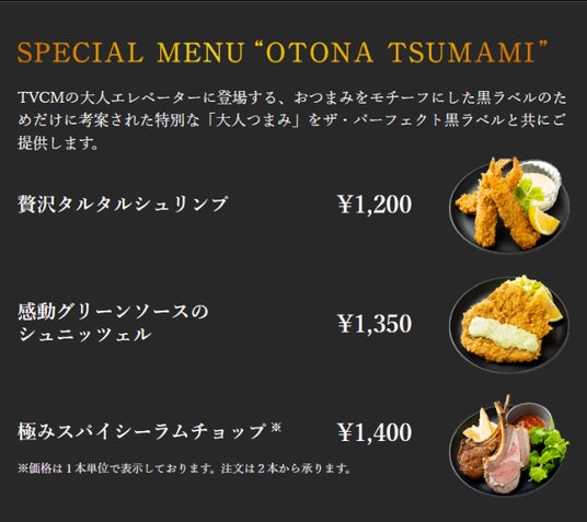 ・TVCM「大人エレベーター」に登場するおつまみをモチーフに、黒ラベルのためだけに考案された「大人つまみ」