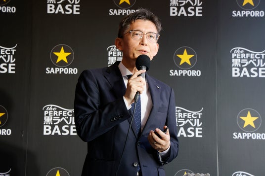 発表会の冒頭では、サッポロビール株式会社 上席執行役員 マーケティング本部長 坂下 聡一より、「サッポロ生ビール黒ラベル」のマーケティング戦略について説明いたしました。「ザ・パーフェクト黒ラベルの取組を開始した2014年から昨年までの11年間で、黒ラベル缶は約2倍の成長を遂げました。また、今年の1-5月も前年比約111%と好調を維持し、黒ラベルが持つ『生のうまさ』と『独自の世界観』に対する支持が拡大している。」とこれまでの成長について言及。今後のブランド戦略については「2025年も黒ラベルはリアルな顧客接点としてブランド体験イベントに注力し、黒ラベル史上最大級の体験接点を創出してまいります。」と語り、2025年の黒ラベルのブランド体験の体験者数は昨年比の1.9倍である約25万人を目標とし、「THE PERFECT 黒ラベル BASEでは体験者数約4万人を目指します。」とTHE PERFECT 黒ラベル BASEでのこれからの展望に意気込みを示しました。